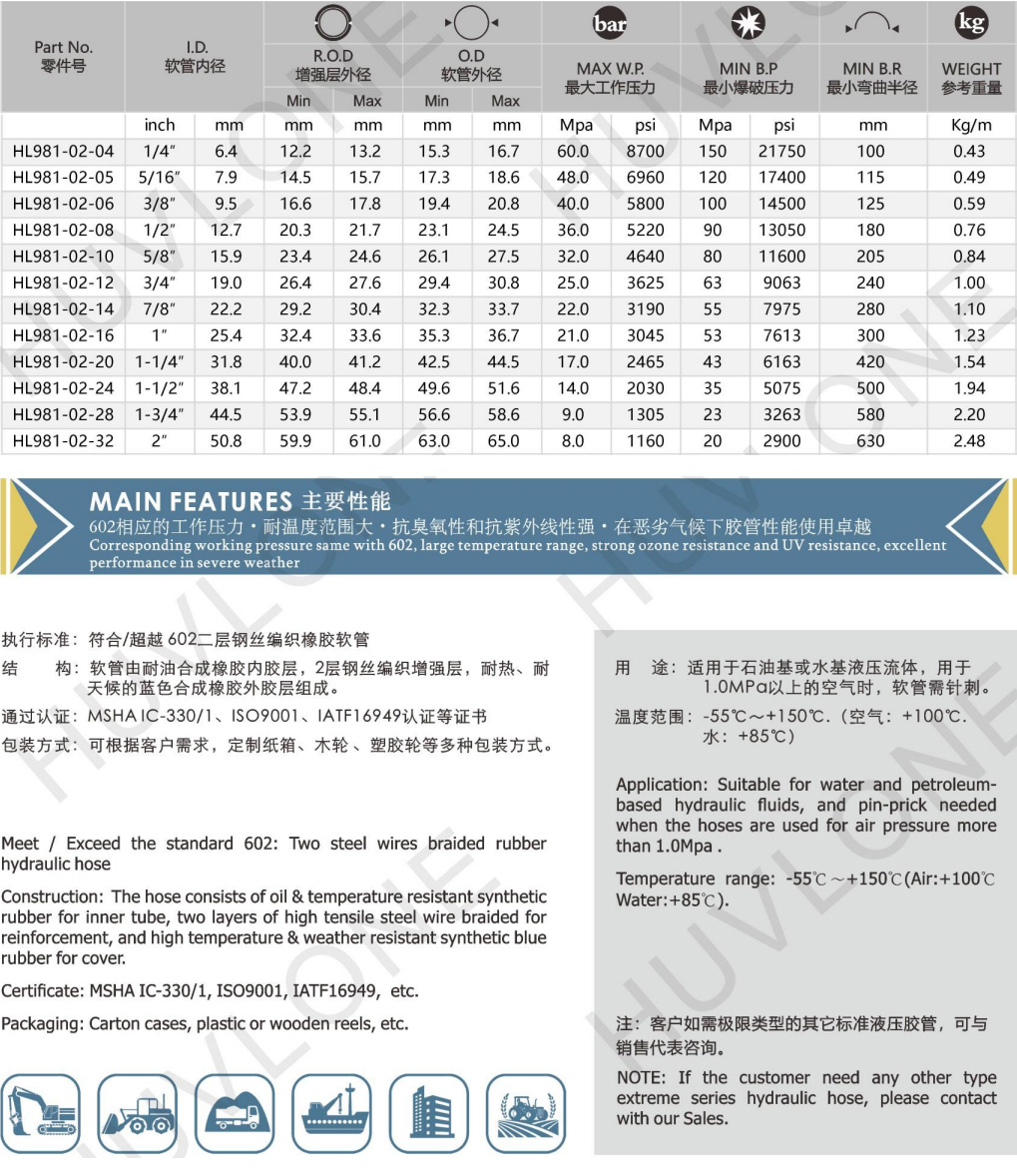 MeetExceed the slandard 602: Two steel wires braided rubber hydraulic hose with high & Low temperature - resistance