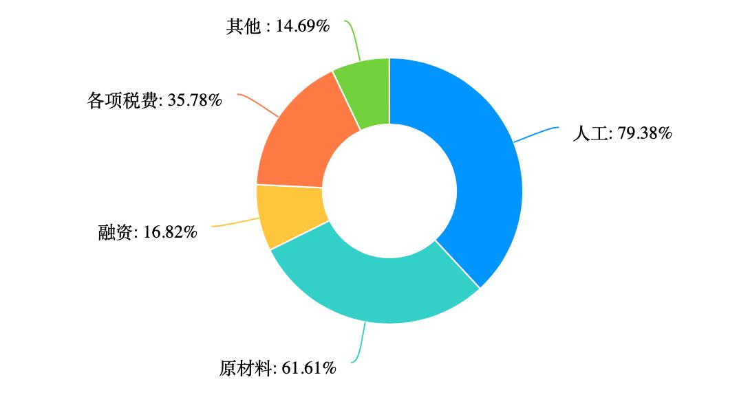 11.成本壓力的調(diào)研,79.38%的企業(yè)認(rèn)為來自人工成本;61.61%的企業(yè)認(rèn)為原材料無法正常到位影響較大;35.78%的企業(yè)認(rèn)為來自各項稅費的壓力很大。這三項帶給企業(yè)的壓力在此階段最為突出。