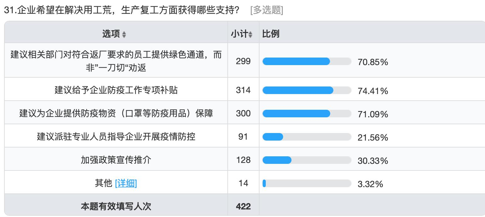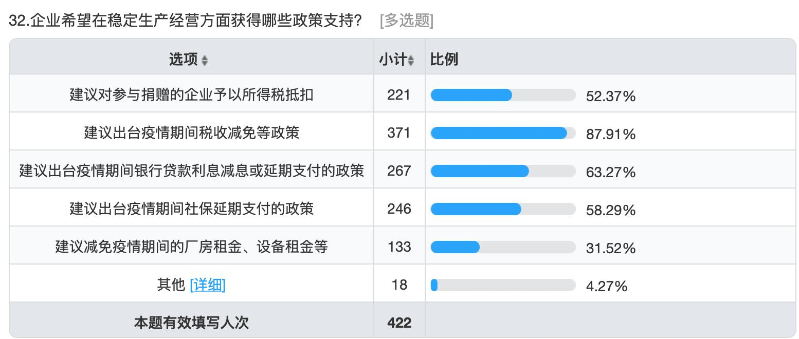 備注:有企業(yè)呼吁“各種稅費和利息應(yīng)該是減免而不是延期““盡快恢復(fù)物流”等。
