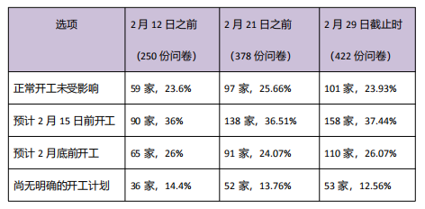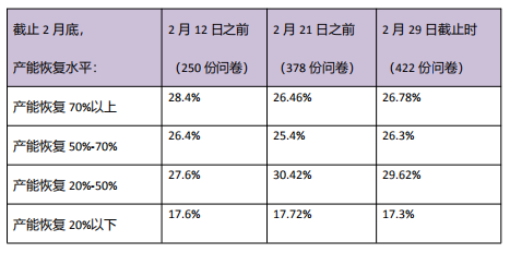 5. 企業(yè)預(yù)計 2 月底前的產(chǎn)能恢復(fù)情況: